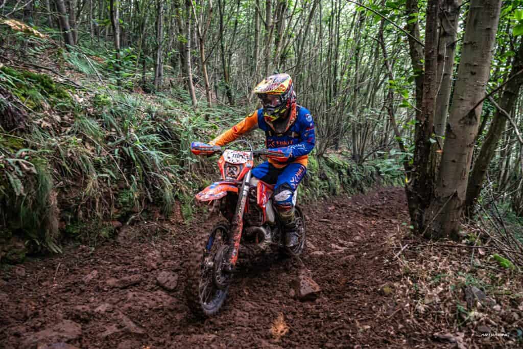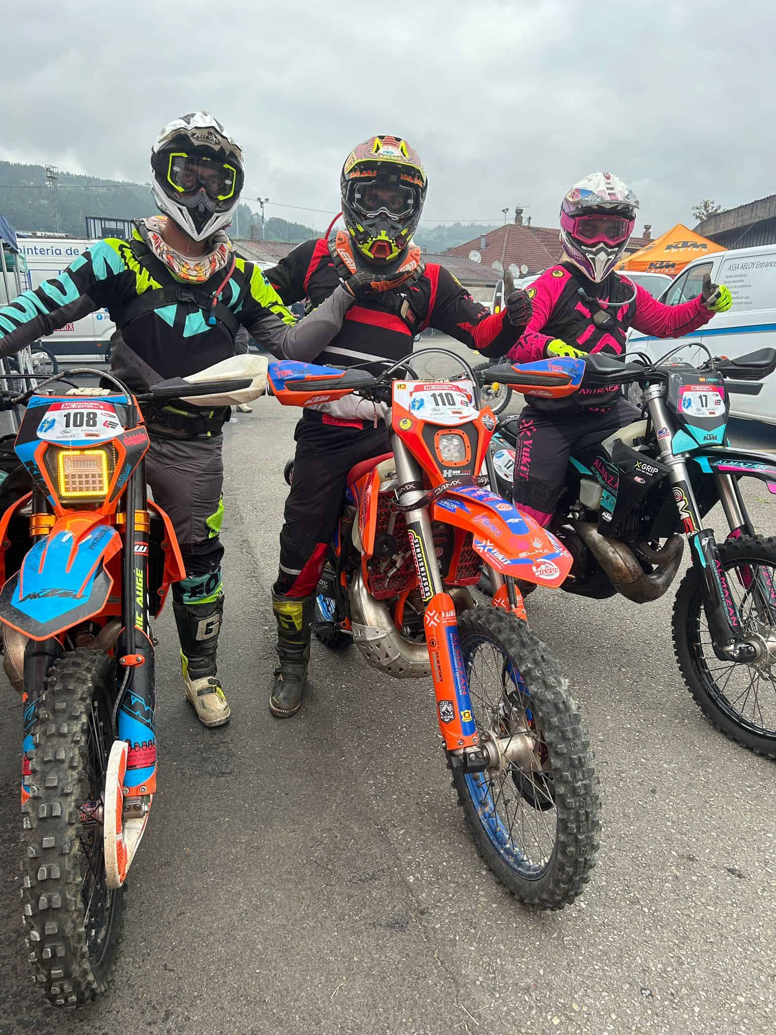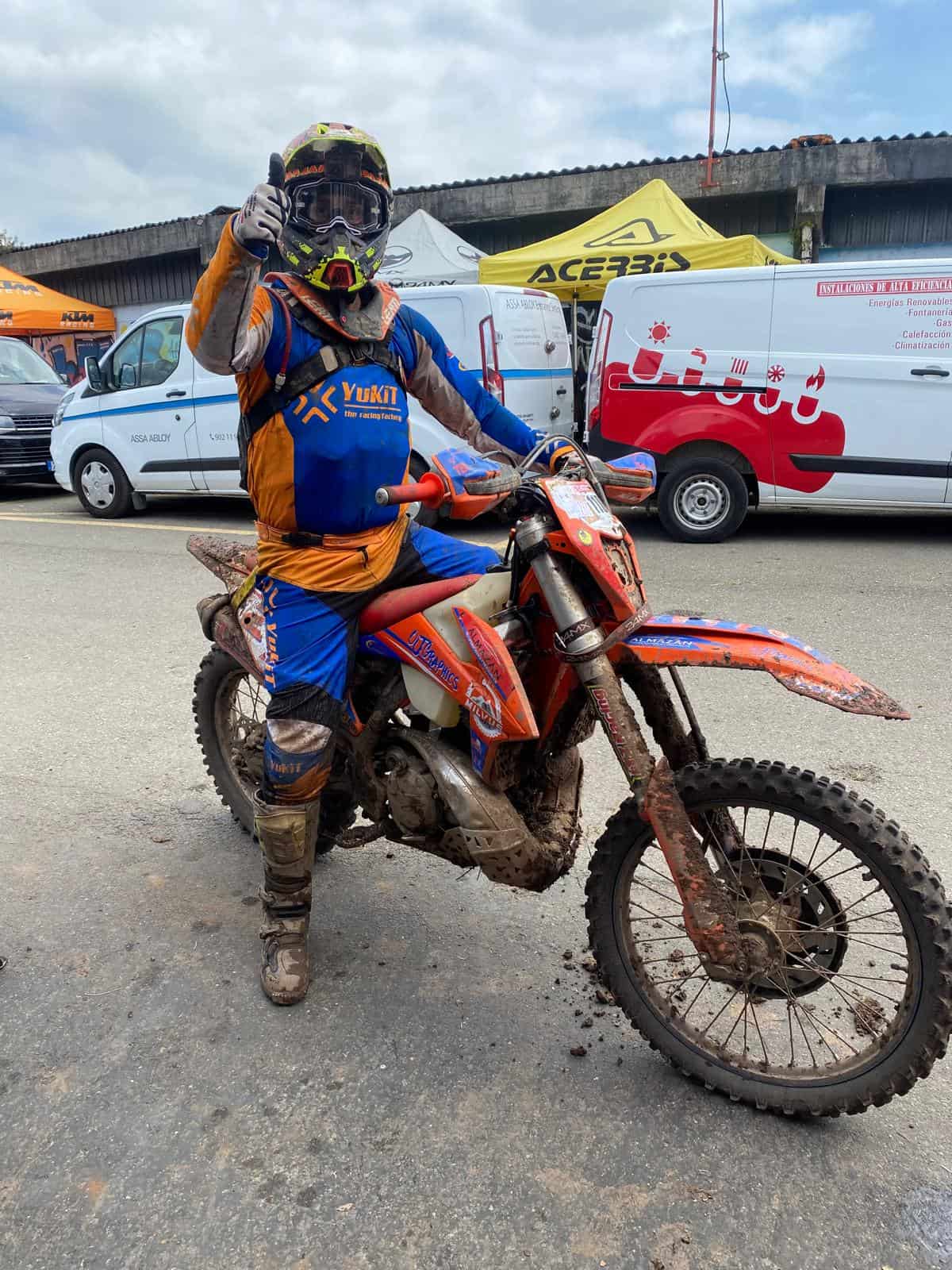 El domingo se presentaba muy bien, con un terreno prácticamente perfecto para la práctica del enduro. A las 9:00 horas fue el pistoletazo de salida de los 330 pilotos y la suerte fue dispar para los pilotos sorianos. Está vez el mejor fue Michel Cabrejas marcando una formidable P74 tras una errónea y polémica decisión de un Marshall de no dejarle salir a última vuelta, en la cual habría ganado posiciones dado el formato de carrera. Aún así, muy buena posición del piloto que hizo un grandísimo fin de semana y no para de crecer. El siguiente clasificado fue Carlos Fernández , marcando una P171 y a quien una avería mecánica le impidió completar la segunda vuelta, que le habría posicionado bastante mejor. El siguiente fue Adrián Calvo en una P181 completando una muy meritoria vuelta al exigente recorrido de Grado, ya que fue muy mermado físicamente tras una caída el fin de semana anterior en el super enduro de Sigüenza. Pablo Callejo por su parte clasificó P238 haciendo una gran vuelta y disfrutando muchísimo del recorrido.