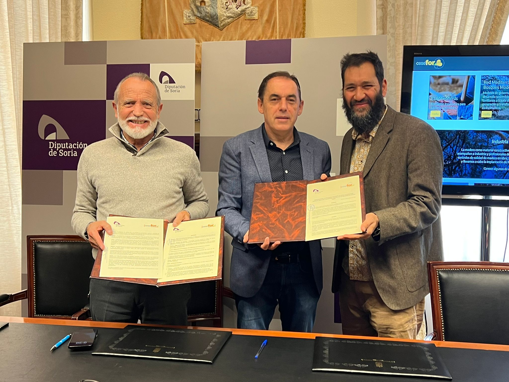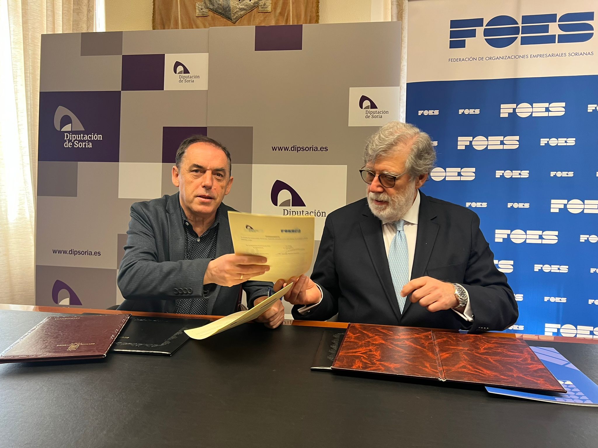 El presidente de la Diputación, Benito Serrano, y el presidente de la Federación de Organizaciones Empresariales Sorianas, Santiago Aparicio, han ...