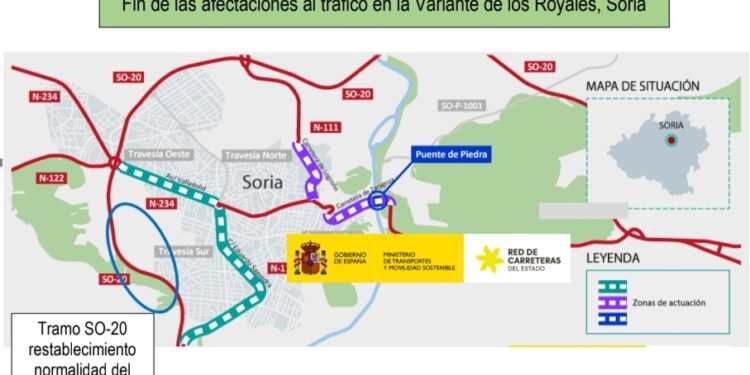 Este restablecimiento de la normalidad del tráfico tendrá lugar a partir de las 9:00 horas del próximo 6 de noviembre, momento en el que se retirarán los semáforos y la señalización que regulan el corte de carril con paso alternativo en dicho viaducto, en la carretera SO-20, quedando totalmente abierta la carretera para todo tipo de tráfico sin ningún tipo de restricción.