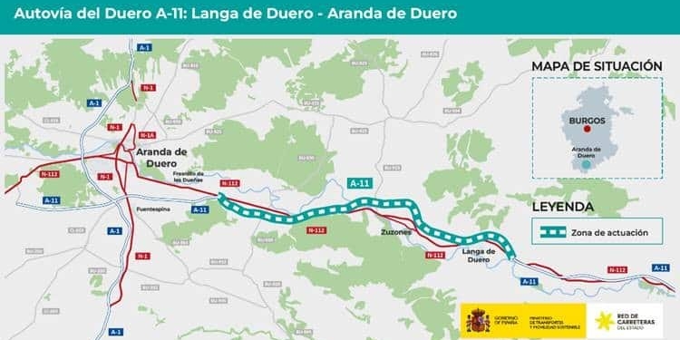Las actuaciones incluyen 22,3 km de tronco de nueva autovía y 4 enlaces, entre ellos el semienlace Oeste de Langa de Duero.